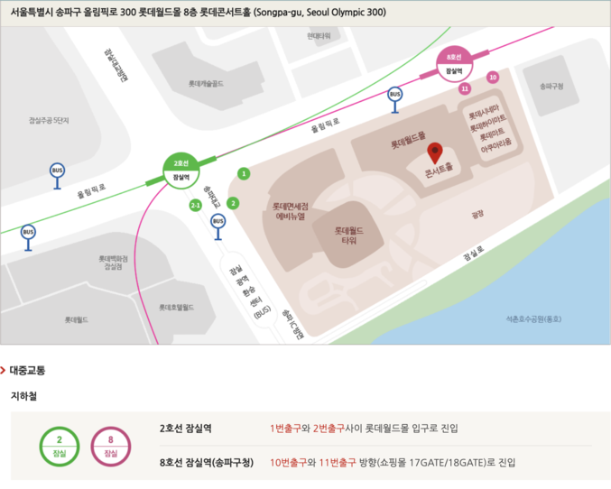 *Directions from Jamsil Station on Subway Line 2 to the Lotte Concert Hall dedicated elevato