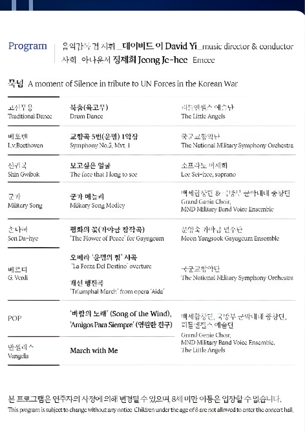 Join us for the Korean War Memorial Concert at the KBS Hall, Yeouido! Last year’s event received fantastic feedback. If you’d like to attend, please register using the link below. We have 100 tickets available, so kindly reserve only if you're sure you can make it.