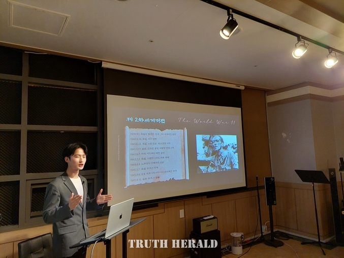 이다헌 청년은 이승만에 대한 왜곡된 진실을 역사적 자료를 바탕으로 반박하며 대한민국 건국 과정을 설명했다