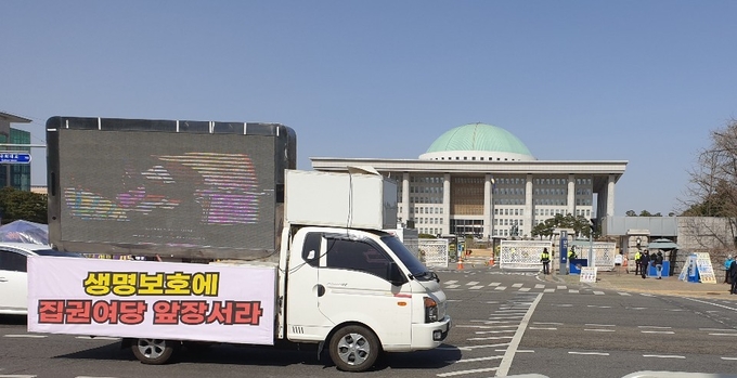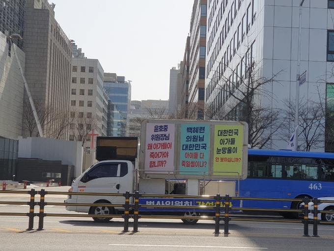 차량에는 "생명보호에 집권여당 앞장서라", "대한민국 아가들 눈망울이 안 보이십니까?", "윤호중 위원장님 왜 아가들이 죽어가야 합니까?" 등과 같은 문구가 적혔다.
