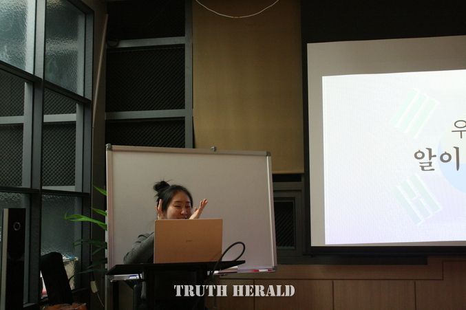 황예지 자매는 책 『알이랑 민족』 (저자. 유석근)을 소개하고 ‘아리랑’은 본래 ‘알이랑’이며, 이는 ‘하나님과 함께’ 라고 해석할 수 있다고 나눴습니다. 한국은 시작부터 하나님과 함께한 민족이었다는 사실을 다양한 역사적 근거들을 통해 알 수 있었습니다. 이어서 대한민국의 사명인 통일한국과 선교한국이 실현되기 위해 어떠한 국내외 환경이 갖춰져야 하며 실제로 어떻게 변화될 것인가에 대한 전망을 토의 해보았습니다