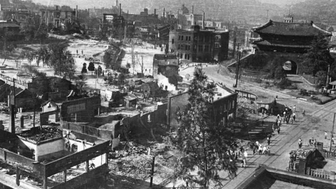 This is the center of Seoul during the Korean War. As you can see, everything was destroyed.