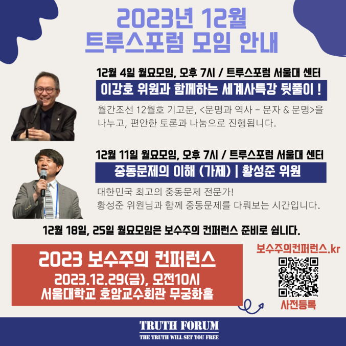 - 12월 4일(월) 오후7시, 트루스포럼 서울대 센터