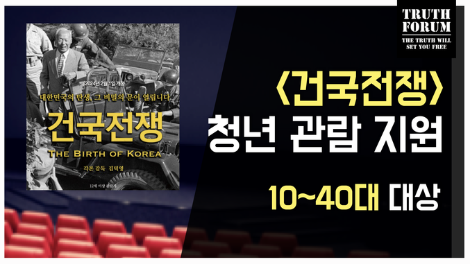영화 <건국전쟁>을 보다 많은 청년들이 관람하기를 바라는 선배님들의 후원으로 아래 프로젝트를 진행합니다.