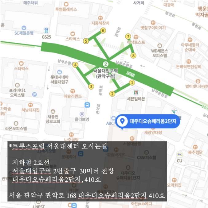 - 2호선 서울대입구역 2번출구 50미터 전방