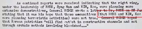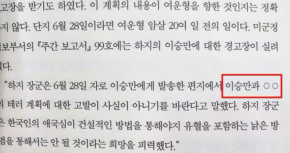 박교수님은 2016년에 쓴 단행본 ‘암살’에서 이승만이 여운영 암살을 주도한 배후라는 인상을 주기 위해 원본자료에 있는 ‘김구’를 은폐하셨습니다.(박태균, ‘암살’, 역사인, 2016, p131) 박교수님께서는 미군정 정보부서의 주간보고서 99호를 인용하셨지만 관련 자료는 94호이며 해당 자료에는 김구의 이름이 명확히 기재되어 있습니다. 김상웅 전 독립기념관장도 2015년에 쓴 ‘몽양 여운형 평전’에서 김구를 과감히 삭제하고 있습니다.(김삼웅, ‘몽양 여운형 평전’, 채륜, 2015, p351) 하지만 김구가 암살단인 백의사를 지휘한 것은 널리 알려진 사실입니다.