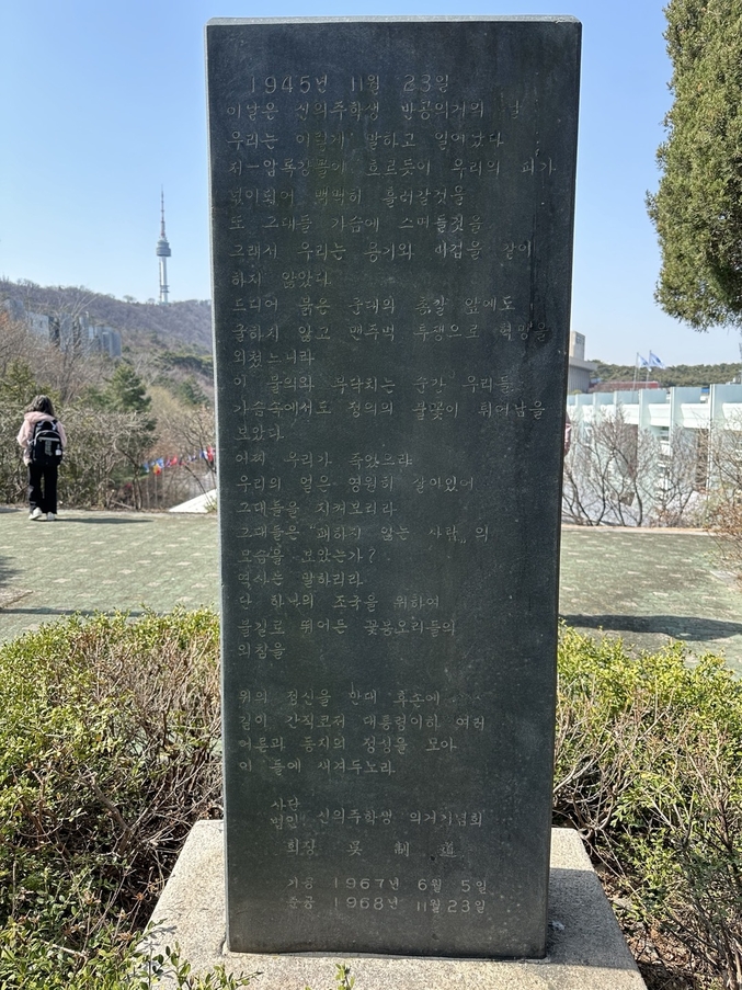 대한민국 최초의 반공의거인 신의주 반공학생의거를 기념하는 탑이 서 있는 곳이기도 합니다.