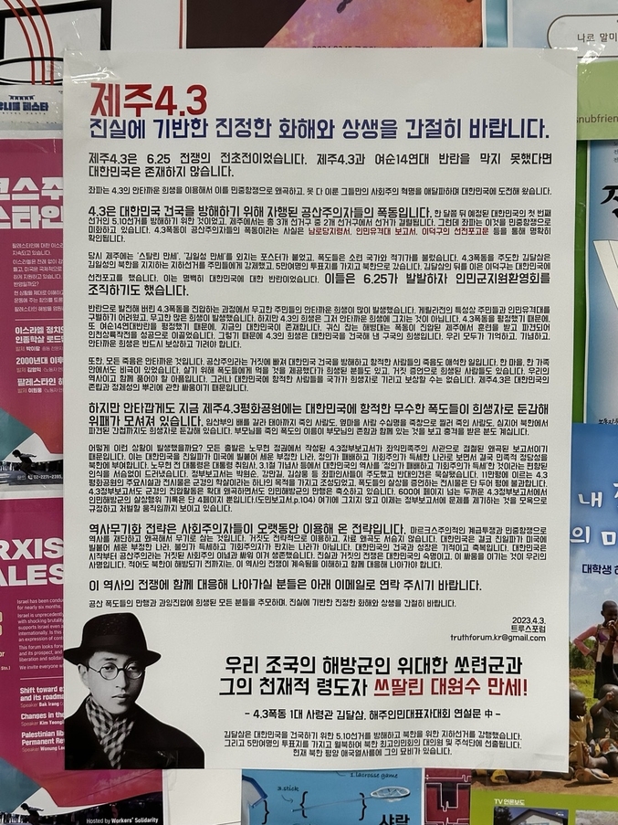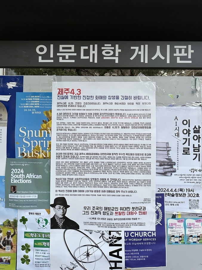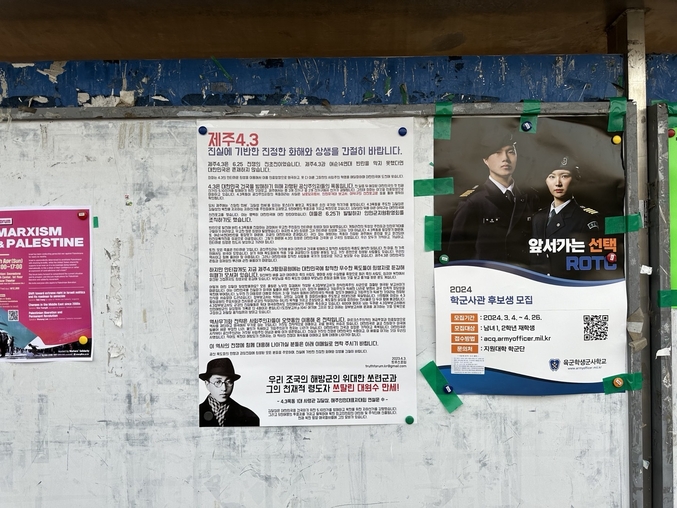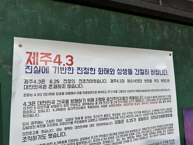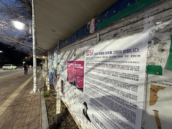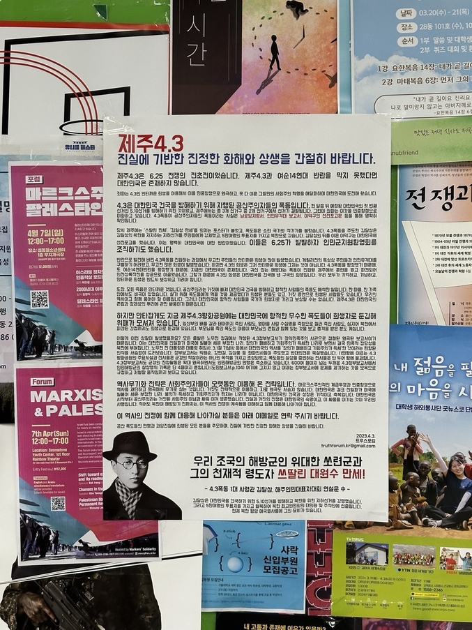 대학가에서 계속되는 건국전쟁... “제주 4.3, 진실에 기반한 화해 촉구” 대자보 게시