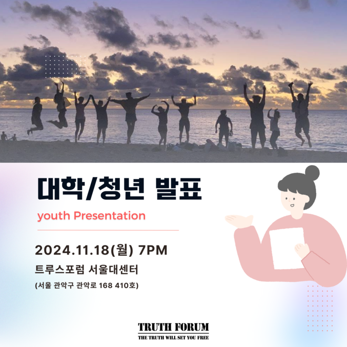 2024년 11월 18일 월요모임에서는 특별히 대학생과 청년들이 준비한 발표로 진행됩니다.