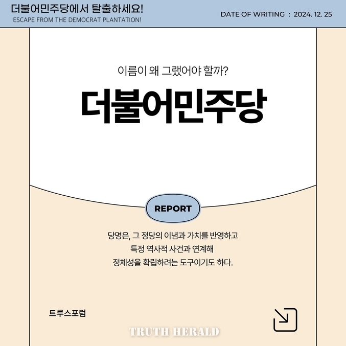 헌법 제8조 4항은 '정당의 목적이나 활동이 민주적 기본질서에 어긋날 때는 정부가 헌법재판소에 그 해산을 제소할 수 있고, 정당은 헌재 심판에 의해 해산된다'고 규정한다. 민주주의를 빙자해 역사를 왜곡하고 거짓 선동으로 국민을 가스라이팅하며 걸핏하면 국정을 마비시키는 더불어민주당은 대한민국의 자유민주적 기본질서를 이미 심각하게 위협하고 있다. 나아가 북한과 중국에게 이상하리만큼 비굴하게 굴종하며 간첩마저 잡지 않는 더불어민주당은 이미 대한민국의 공당으로서 자격이 없다. 윤석열 대통령의 계엄선포는 민주당의 만행에 경종을 울리고 부패한 선관위의 부정선거 검증을 위한 유일한 수단이었다는 점에서 이해하지 못할 것이 아니다. 국군통수권자의 정당한 계엄권 행사를 내란으로 내모는 망국적인 민주당의 선동, 이제 국민들은 좌경화된 민주당과 언론이 만든 셋업에서 깨어나고 있다.