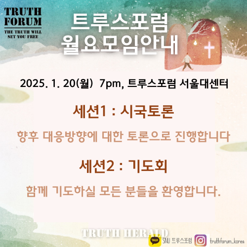 일시: 2025년 1월 20일 (월) 오후 7시 장소: 트루스포럼 서울대센터