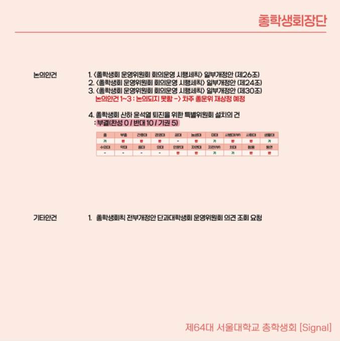 안타까운 것은 외부세력과 연결된 소수 극좌 학생들의 목소리를 서울대 일반의 목소리인양 왜곡하는 좌파 언론의 추태입니다. 비록 지난 12월 5일, 갑작스런 계엄으로 흥분한 많은 서울대 학부생들이 전체학생총회 통해 대통령 탄핵을 지지하는 결의를 채택했으나, 그 후 추진된 '윤석열 퇴진 특별위원회'의 설치는 만장일치로 부결되고 있습니다. 계엄령 이후 서울대인들의 인식이 크게 변하고 있다는 증거입니다. 그럼에도 불구하고 좌경화된 언론은 사회변혁당, 노동자연대, 진보당과 같은 일부 극좌성향 학생들의 의견을 서울대의 일반적인 의견인양 호도하고 있습니다.