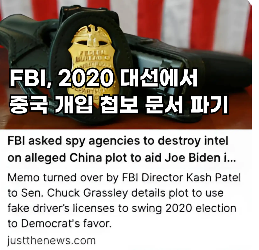 2020년 미국 대선 당시, 바이든 후보에게 유리하게 작용한 중국의 부정 선거 개입 정황이 FBI 내부 첩보 문서에 담겨 있었음에도, FBI는 해당 정보를 의도적으로 은폐하고, 국민에게 공개하지 않았다.