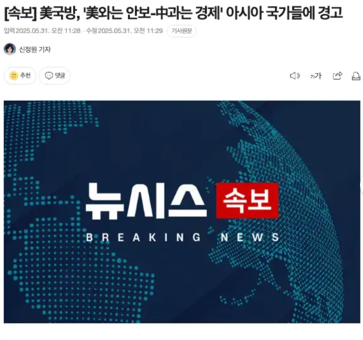 피터 헤그세스 미국방부 장관이 중국의 임박한 위협을 경고하며 아시아 국가들의 대중국 경제의존성을 비판했다.