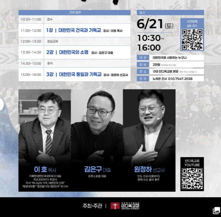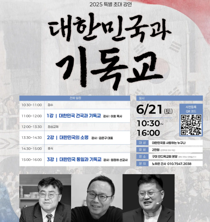 구미안디옥교회 특강입니다. 한글을 통해 전달된 복음, 복음을 통해 한반도에 전달된 보편적 가치, 이를 기반으로 이루어진 건국과 산업화, 그리고 앞으로 나아가야 할 길에 대해 나눴습니다.