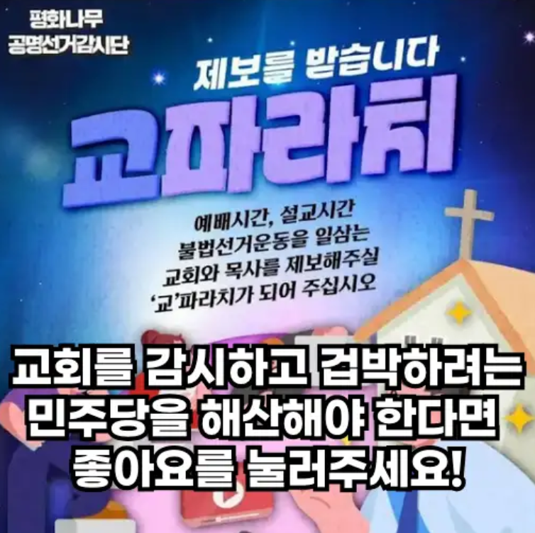 교회를 정치의 감시 아래 두려는 민주당. 정교분리라는 허상에 빠져서 침묵한다면, 교회는 이미 전체주의적인 국가권력의 감시 아래 놓이게 될 것입니다.