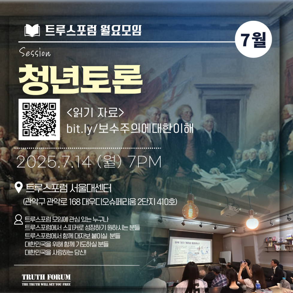7월 14일(월), 트루스포럼 월요모임은 청년토론으로 진행합니다!