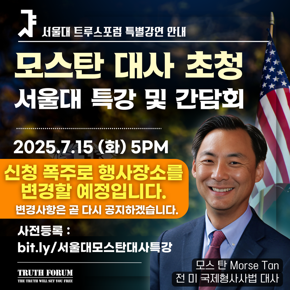 [서울대 트루스포럼 특별강연 안내 – 장소 변경 관련 공지]