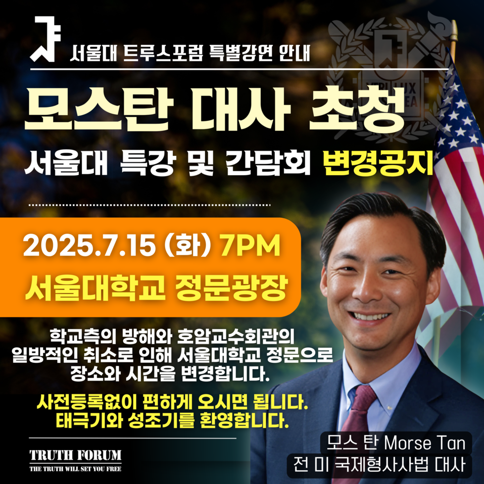 학교측의 방해와 호암교수회관의 일방적인 대관 취소로 인해 서울대학교 정문으로 장소와 시간을 변경합니다.