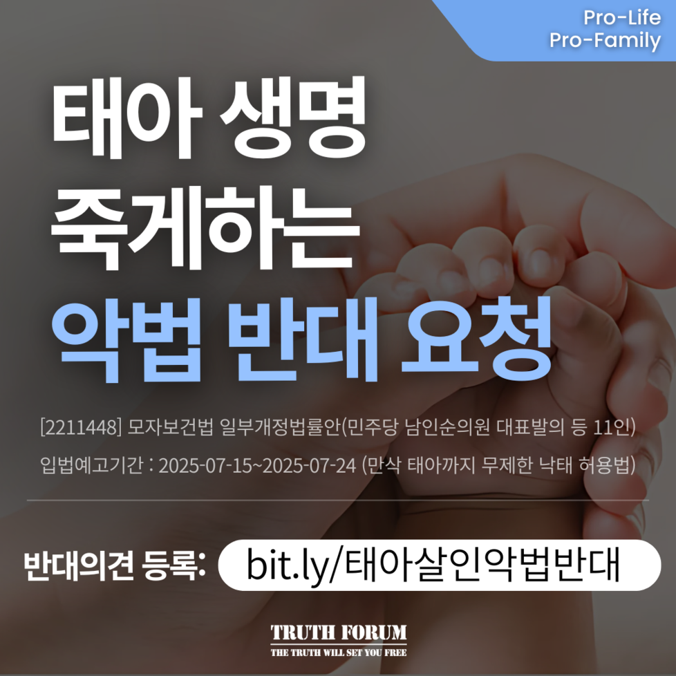[ 태아 생명 죽게하는 악법 반대 요청 ]