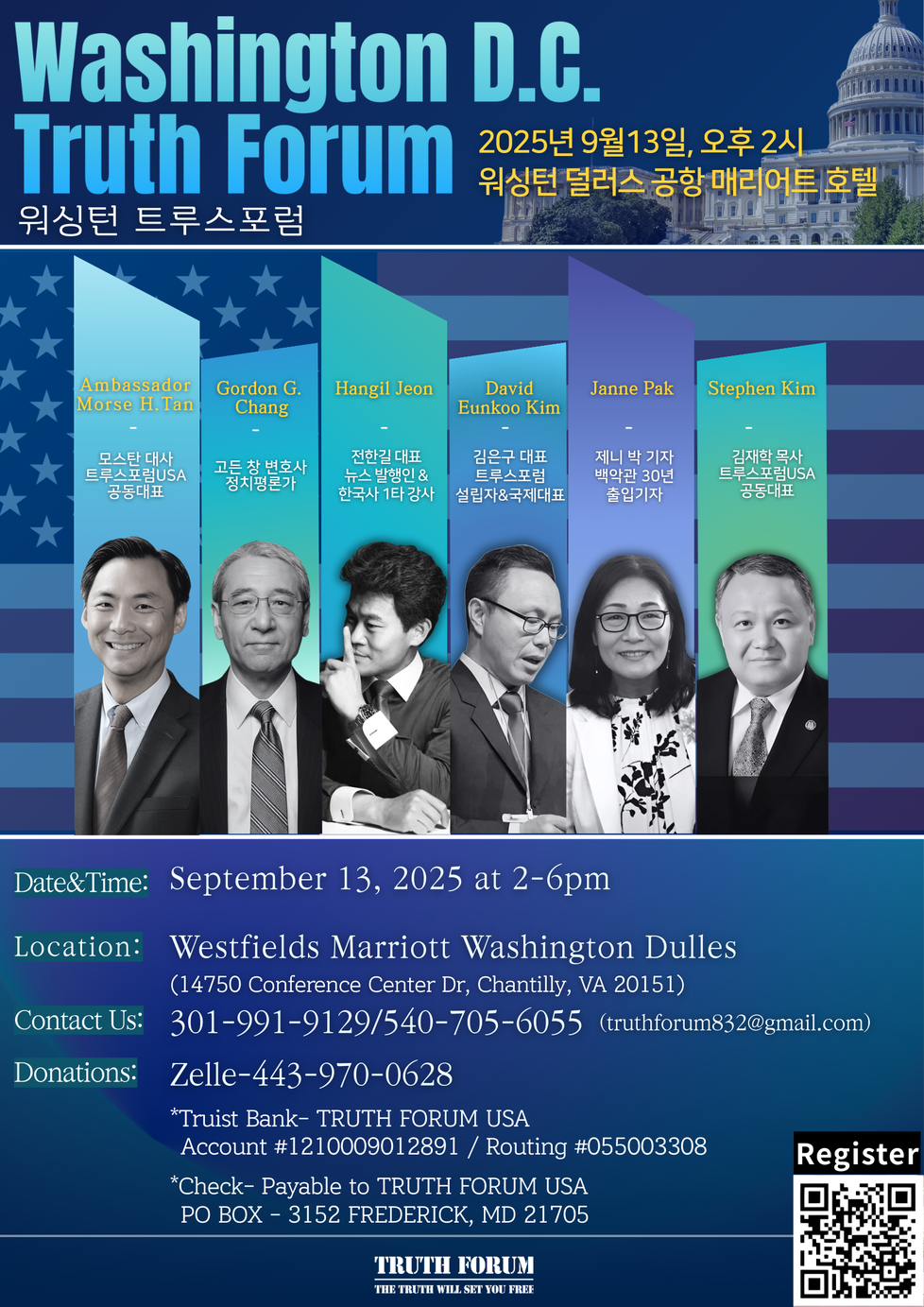 지난 3월 부터 준비해 온 제1회 워싱턴DC 트루스포럼을 9월 13일에 진행합니다.