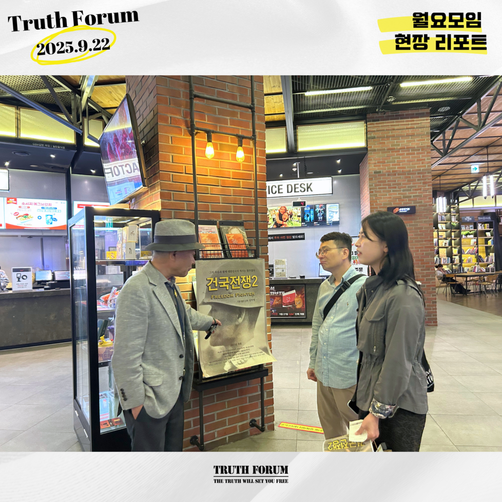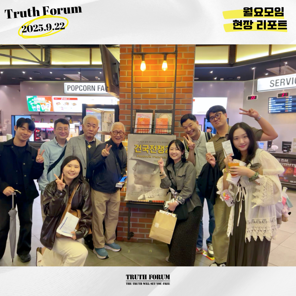 9월 22일(월) 저녁, 트루스포럼 월요모임은 CGV 강변에서 김덕영 감독의 <건국전쟁2>를 단체 관람하는 시간으로 진행되었습니다.