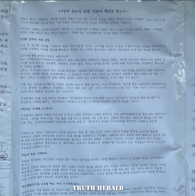 언론과 정치권의 거짓선동은 사실에 대한 국민의 접근권과 판단할 기회를 박탈하는 것이다. 그 피해와 책임은 온전히 국민의 몫이다. 날조와 선동의 공범이 된 언론과 정치. 이제는 강력한 책임을 물어야 한다. 진실을 외면하고 국민을 오도하는 선동을 더 이상 용납해선 안된다. 국민의 신뢰를 배반한 거짓된 정보는 자유민주주의 적이며, 이를 바로 잡는 것은 국민의 몫이다. 신중함 가운데 스스로 생각하며, 소중한 자유를 책임있게 사용해야한다. 우리의 정당한 분노를 올바로 사용하자. 거짓 선동을 직시하고 진실 가운데 함께 나아가자. 진실의 힘을 믿는다.