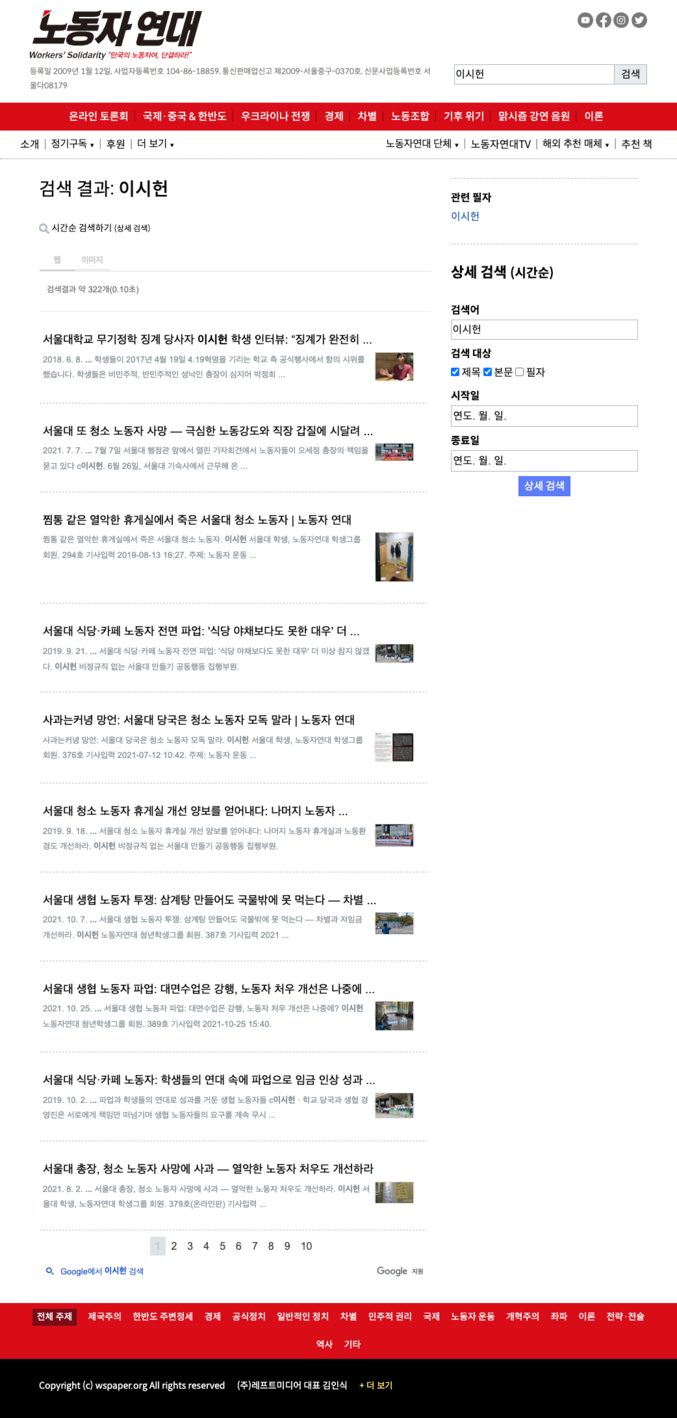 3) 노동자연대 웹진에 게시된 이시헌씨 관련 자료