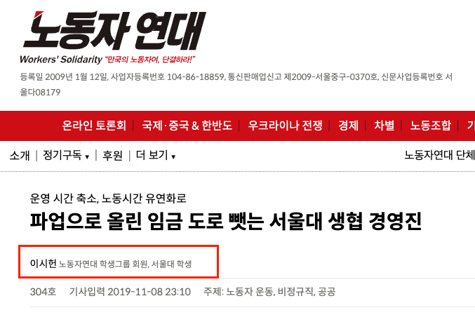 - 2차 대자보를 실명으로 게시한 이시헌 씨는 '노동자연대'의 회원