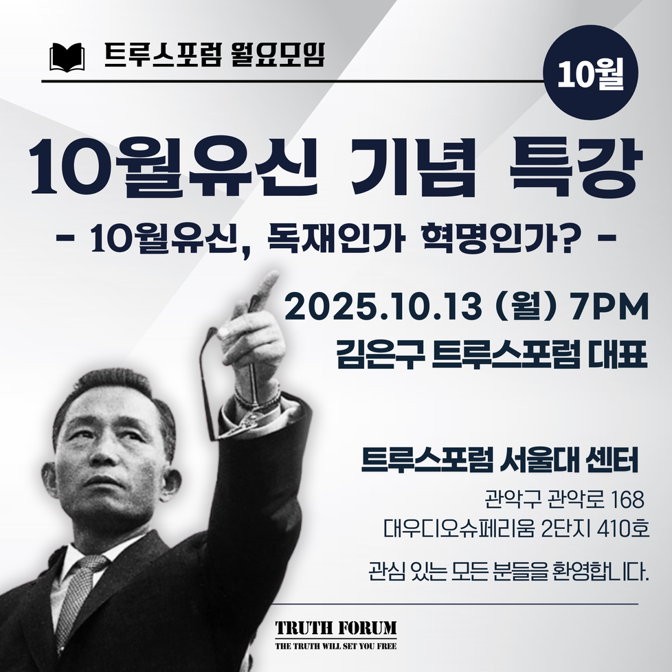 주제: 10월유신 기념 특강 - 10월유신, 독재인가 혁명인가?