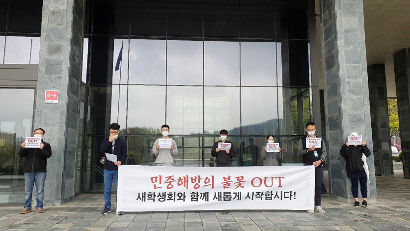 - 민중해방의 불꽃 서울대총학생회 및 서울대대학원총학생회를 거부하는 학생들로 구성된 서울대새학생회에 본부에 대한 교섭권을 인정하십시오!