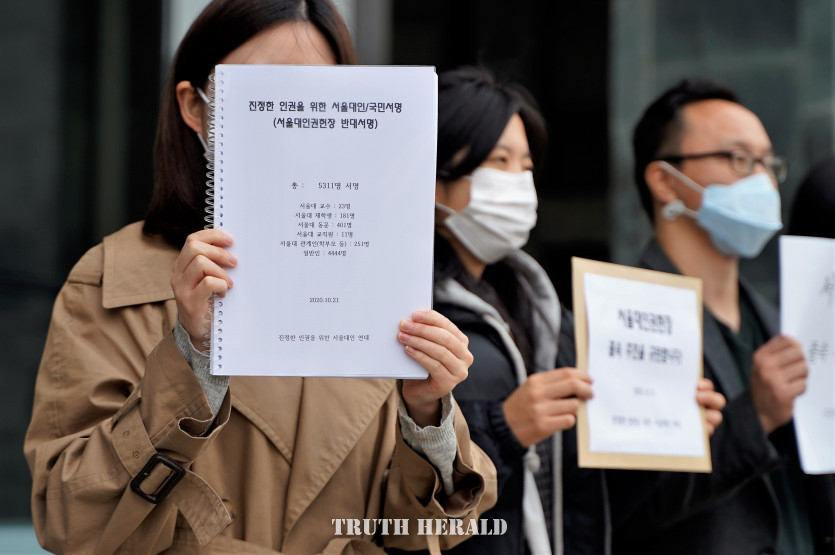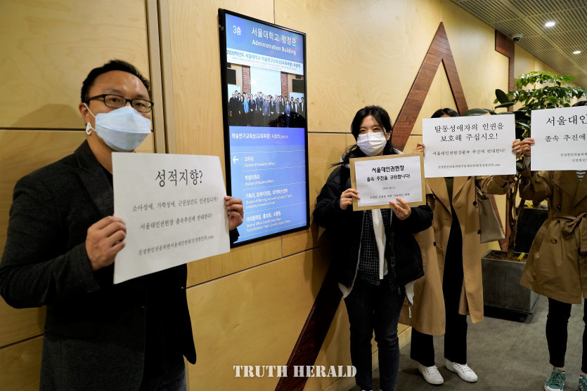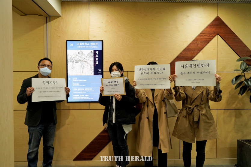 진정한 인권을 위한 서울대인 연대(진인서)가 오늘 오전 서울대본부 학생처와 인권센터에 방문해 서울대 인권헌장의 졸속 추진을 규탄하고 성명서와 관련자료를 전달했습니다.