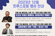 트루스포럼 2023년 12월 행사 안내 - 관심있는 모든 분들을 환영합니다! 이강호 위원과 함께하는 세계사 특강 뒷풀이! - 12월 4일(월) 오후7시, 트루스포럼 서울대 센터 중동문제의 이해 | 황성준 위원 - 12월 11일(월) 오후7시, 트루스포럼 서울대 센터 12월 18일, 12월 25일 월요모임은 보수주의 컨퍼런스 준비로 쉽니다! *공동주최행사 북한 연계세력의 내막 | 민경우 - 12월 22일(금) 오후5시, 정동 프란치스코회관 220호 2023 보수주의 컨퍼런스 - 12월 29일(금) 오전10시, 서울대 호암교수회관 무궁화홀 보수주의 컨퍼런스는 트루스포럼이 2020년부터 진행해 온 대한민국 최초의 보수주의 컨퍼런스 입니다. 많은 관심과 응원 부탁드립니다! 참석인원 확인을 위해 아래에 등록해 주세요! 2023 보수주의 컨퍼런스 사전등록 2023 보수주의 컨퍼런스 사전등록 *트루스 서포터즈 천만클럽 모집 안내 트루스포럼이 월 천만원 운영비 확보를 목표로 월 1만원 정기후원자 천명을 모집합니다! 대학/청년들을 중심으로 자생적으로 시작된 대한민국 최초의 보수주의 청년조직 트루스포럼이 지속적으로 성장해 나갈 수 있도록 응원해 주세요! 정기후원 신청은 아래