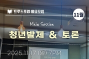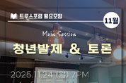 [트루스포럼 월요모임 안내] 돌아오는 주 월요일 (11월 24일)저녁에는 청년 발제와 토론을 중심으로 트루스포럼 월요모임이 진행됩니다. 트루스포럼 청년들의 관심 분야를 비롯해서 각자의 삶의 시간들을 나누는 소중한 시간을 가질 예정입니다. 어떤 주제의 나눔이 있을지 궁금하시다면, 현장에서 직접 함께해 주세요! 모임 전후로는 서로 편안하게 교제하고 이야기를 나눌 수 있는 시간도 마련되어 있습니다. 트루스포럼을 응원하시거나 관심 있는 분이라면 누구나 자유롭게 참여하실 수 있습니다. 일시: 2025년 11월 24일(월) 오후 7시 장소: 서울대 트루스포럼 센터 (서울 관악구 관악로 168) 항상 함께해 주셔서 감사합니다! ❤️ 트루스포럼 사무국