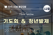 [트루스포럼 월요모임 안내] 돌아오는 주 월요일(12월 1일) 저녁에는 청년발제와 기도모임으로 진행합니다 :) 하나님의 말씀에 기반해 한국사회를 근본적으로 회복하고, 북한을 해방하며, 자유주의 신학으로 왜곡된 복음을 바로잡고 세계의 교회를 건강하게 다시 세워내는 것이 하나님의 기적으로 시작하고 성장한 대한민국의 궁극적인 사명입니다. 그렇기 때문에 우리의 활동은 기도 없이 이뤄질 수 없습니다. 트루스포럼은 종교단체는 아닙니다. 신앙이 다른 분들도 함께하실 수 있습니다. 하지만 건강한 복음에 바탕을 둔 기도의 사람들이 모임의 중심을 잡고 나아가야 지속적으로 성장해 나아갈 수 있습니다. 이에 트루스포럼은 아래와 같은 주제를 두고 기도를 계속해 왔습니다. <트루스포럼의 기도주제> 1. 역사의 주인이신 하나님 2. 대한민국과 열방의 주인이신 하나님 3. 대학과 모든 학문의 주인이신 하나님 4. 이스라엘과 예루살렘을 위한 기도 5. 동성애, 이슬람, 자유주의 신학 6. 북한의 해방 7. 대한민국의 회복 8. 트루스포럼을 위한 기도 위의 기도제목을 두고 함께 기도하실 분들은 누구나 편하게 참석해 주세요! 일시: 2025년 12월 1일(월) 오후 7시 장소: 서