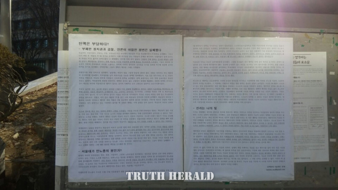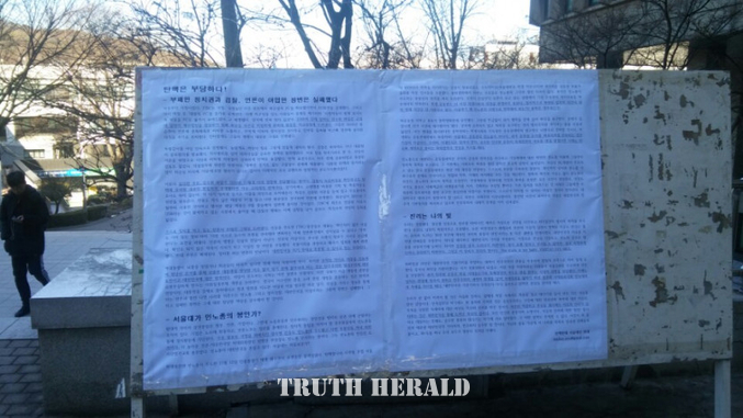 현대적 의미의 삼권분립은 정부, 언론, 기업이다. 그런데 노동운동과 민주화라는 정당성을 빌미로 삼권 위에 군림하는 조직이 있다. 기업은 노조에 휘둘리고, 언론노조는 정보를 통제한다. 정치적 중립을 지켜야 할 공무원들마저 민노총을 통해 정치활동에 가담한다. 거짓 정보로 국정을 마비시킨 광우병 선동도 민노총이 주도했고 이번 촛불선동 역시 마찬가지다. 더 놀라운 것은 자유한국당 비대위원장인 인명진 위원장도 민노총 인사라는 점이다. 그는 민노총의 전신인 도시산업선교회 총무였다. 민노총이 대한민국을 흔들고 있다. 서울대는 자유로운가?