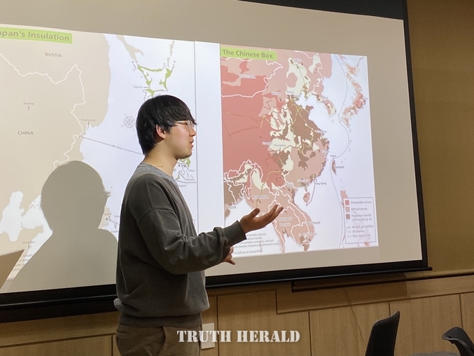 (세계지도를 보며 국제정치 흐름을 설명하는 전현호군)
