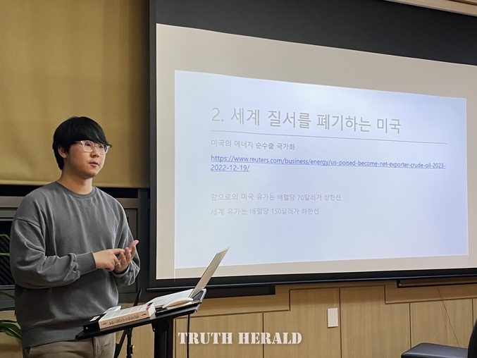 현호군의 발제를 통해 미국의 셰일가스가 에너지원을 넘어서 패권경쟁의 핵심키라는 사실과 더 나아가 정치경제적인 변화 속에서 대한민국이 발견해야 함의가 모든 청년들에게 쉽고 명확하게 전달되었습니다.