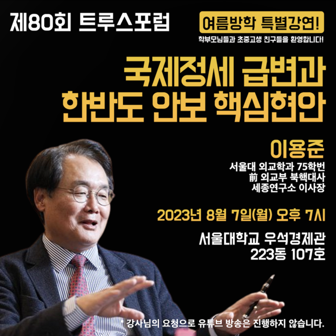 국제정세 급변과 한반도 안보 핵심현안, 이용준 세종연구소 이사장 | 제80회 트루스포럼 강연
