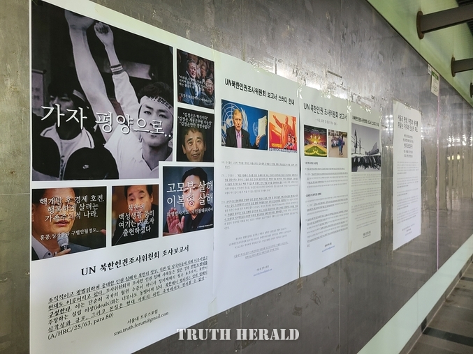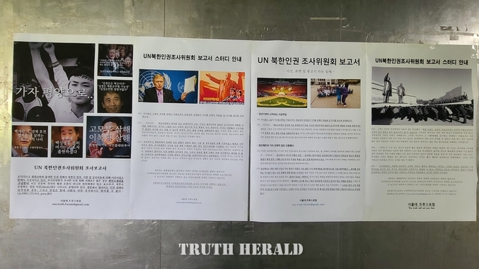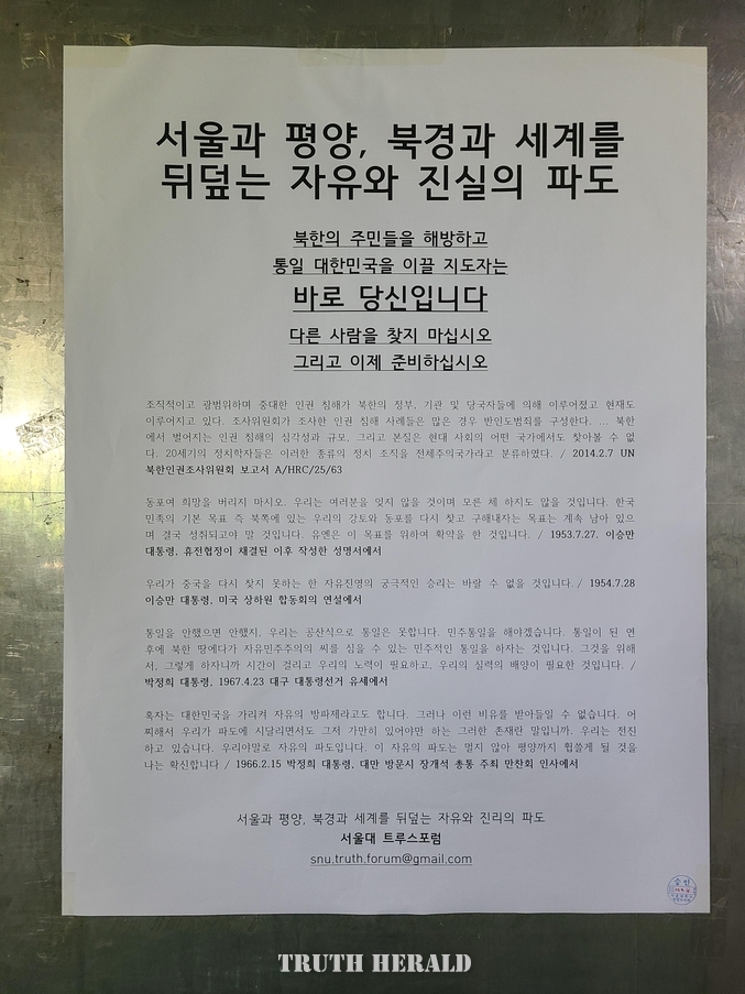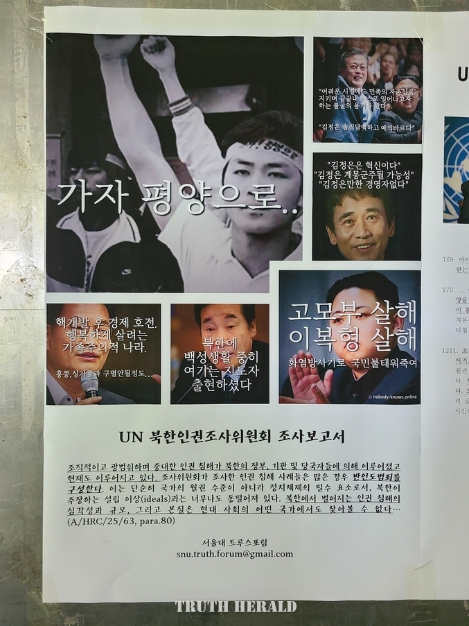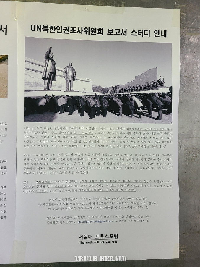그리고 중앙도서관 게시판에 북한인권 포스터 전시물을 함께 설치하고 선배들과 함께 서울대 구석구석을 누볐습니다.
