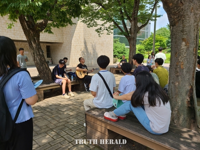 트루스포럼 사무실에서 아이스브레이크와 특강을 마치고 서울대로 이동해 함께 찬양을 했습니다.