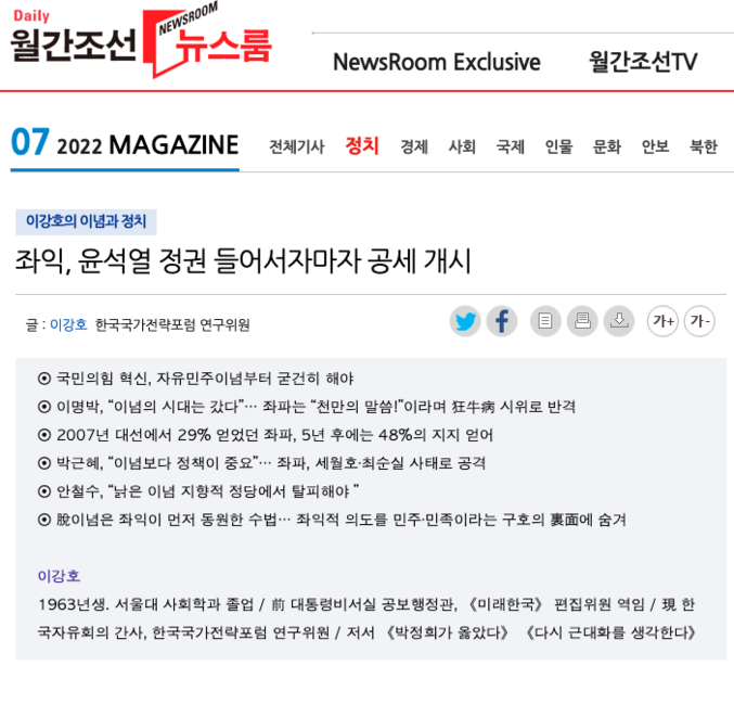 이강호의 이념과 정치 - 좌익, 윤석열 정권 들어서자마자 공세 개시, 월간조선 2022 7월호