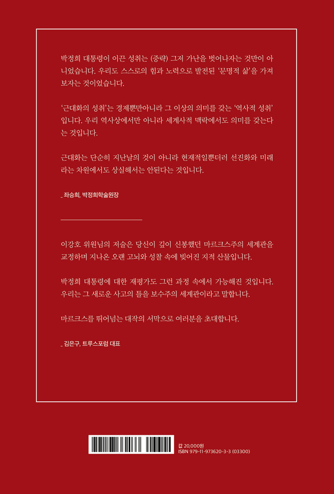 *이 책은 지난 2022년 박정희대통령기념재단에서 비매품으로 출판한 것을 시중에 처음으로 선보이는 것입니다. 트루스포럼이 제작한 세 번째 책, 많은 관심과 응원 부탁드립니다.