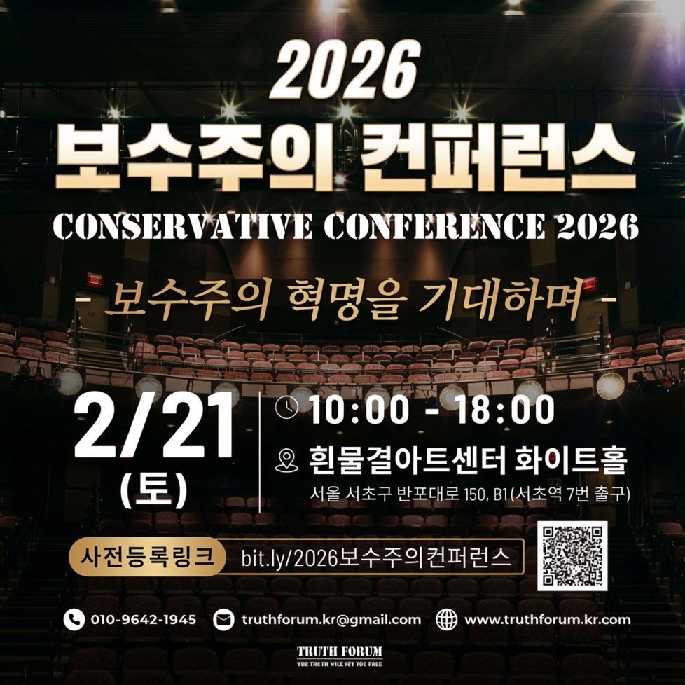 2026년 2월 21일, 대한민국 최초로 탄생한 보수주의 청년 단체인 트루스포럼의 여섯 번째 보수주의 컨퍼런스가 개최됩니다. 관심 있는 모든 분들을 환영합니다!