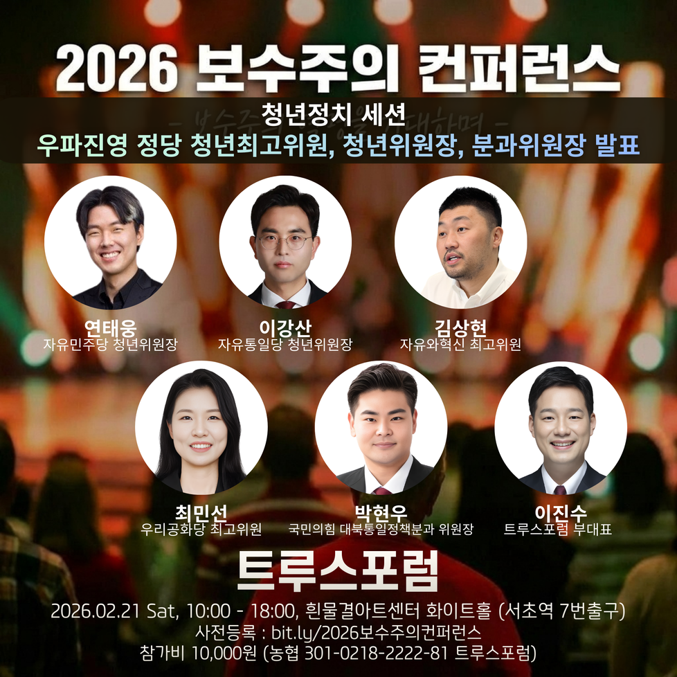 2026년 2월 21일, 대한민국 최초로 탄생한 보수주의 청년 단체인 트루스포럼의 여섯 번째 보수주의 컨퍼런스가 개최됩니다.
