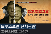 [트루스포럼 월요모임 안내] 다가오는 1월 26일(월) 트루스포럼 월요모임은 영화〈2024.12.03 그날 조작된 내란 감춰진 진실> 단체 관람으로 진행됩니다. 등록 링크: https://bit.ly/트루스포럼단체관람 (정원 마감 시 신청 링크는 자동으로 종료됩니다) ※ 선착순, 사전 신청자만 관람 가능합니다. ※ 신청자 분들께는 확인 문자를 별도로 안내드립니다. ️ 일시: 2026년 1월 26일(월) 오후 7시 장소: 메가박스 송파 파크하비오 (서울 송파구 송파대로 111, 지하 1층) 많은 관심과 참여 부탁드립니다! 트루스포럼 사무국 관람신청 바로가기